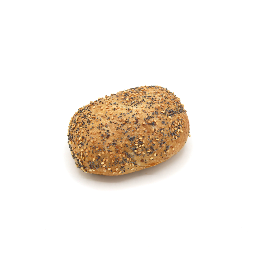 Mehrkonbrötchen aus Weizen und Roggenvollkornmehl Zutaten: Wasser, Weizen (Weizenmehl, Weizenkleie), Roggenvollkornschrot, Dinkelsauerteig (Dinkelmehl, Wasser) Sojaschrot, Sonnenblumenkerne, Malz, Salz, Hefe, Gewürze (Bokshornklee, Senfsaat, Kreuzkümmel, Koriandersaat) Mohn, Sesam, Acerolakirsche
