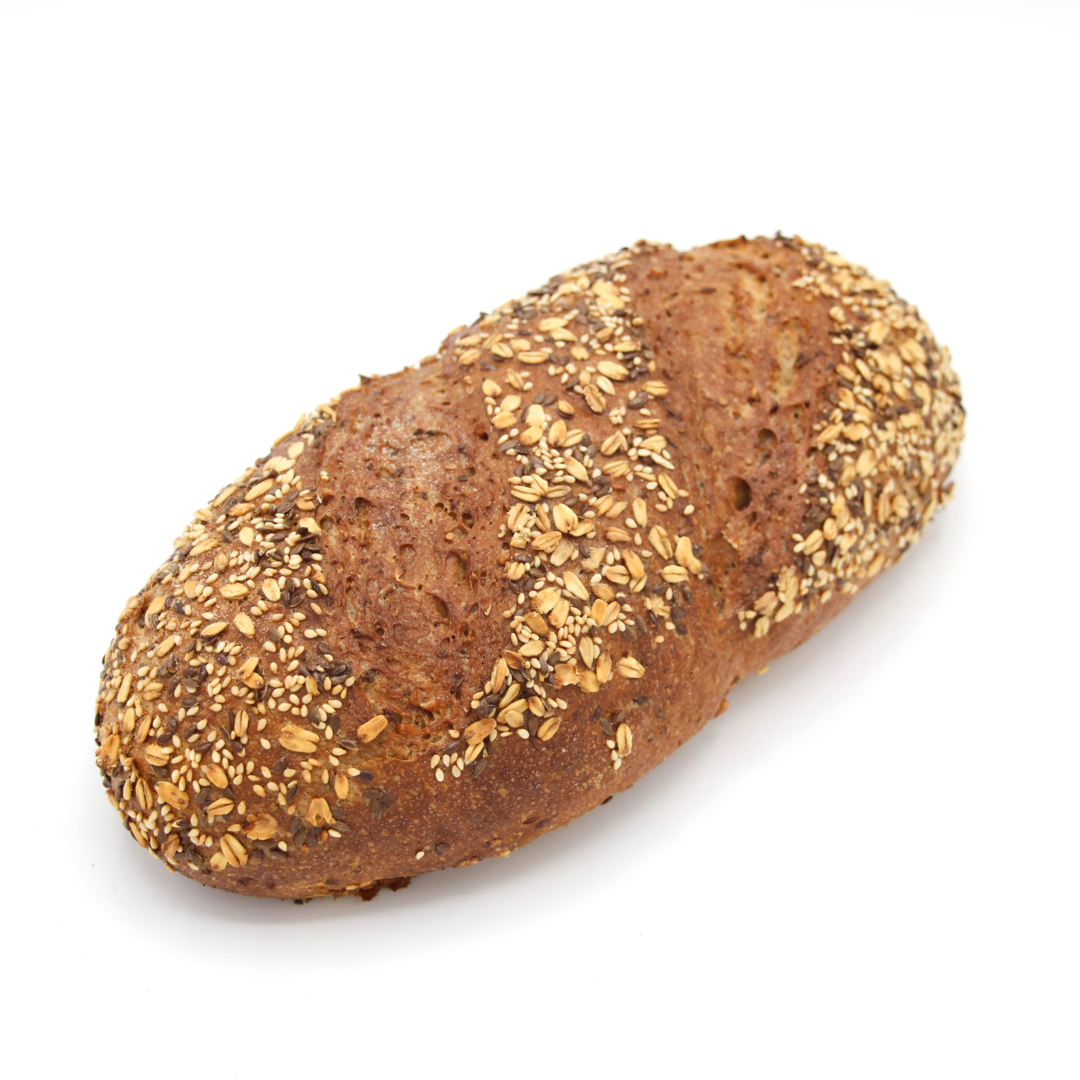 Zutaten: Wasser, Weizenvollkornmehl, Roggenmalz, Haferflocken, Sonnenblumenkerne, Backerbsenschrot, Apfelfasern, Sesam, Leinsaat, Salz, Hefe