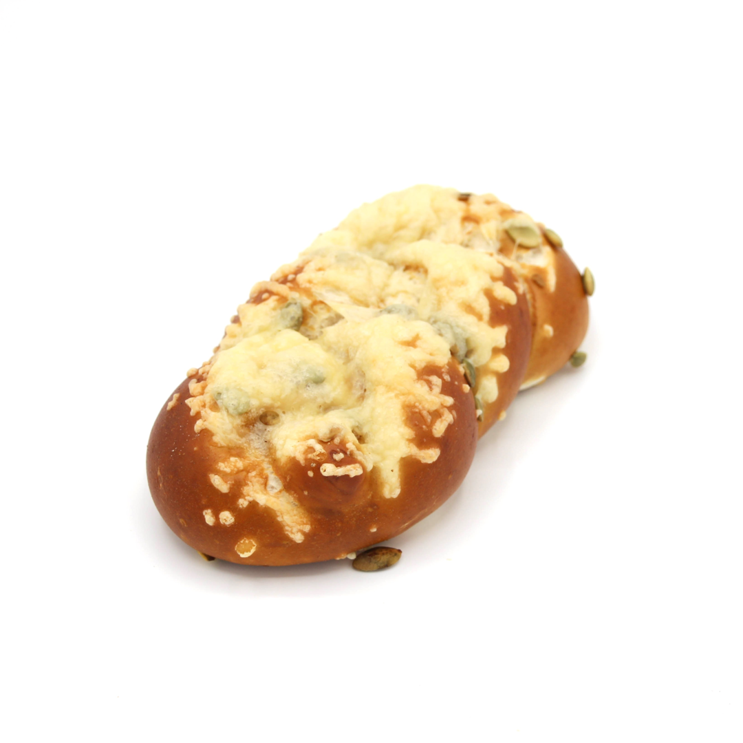 Zutaten: Weizenmehl, Wasser, Emmentaler (Milch, Salz, Lab, Käsereikulturen), Rapsöl, Malz, Kürbiskerne, Hefe, Salz, Natronlauge