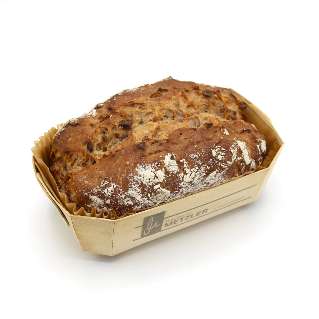 Zutaten: Wasser, Weizenmehl, Roggenmehl, Sauerteig (Roggenmehl, Wasser), Walnüsse, Äpfel, Salz, Hefe, Leinmehl