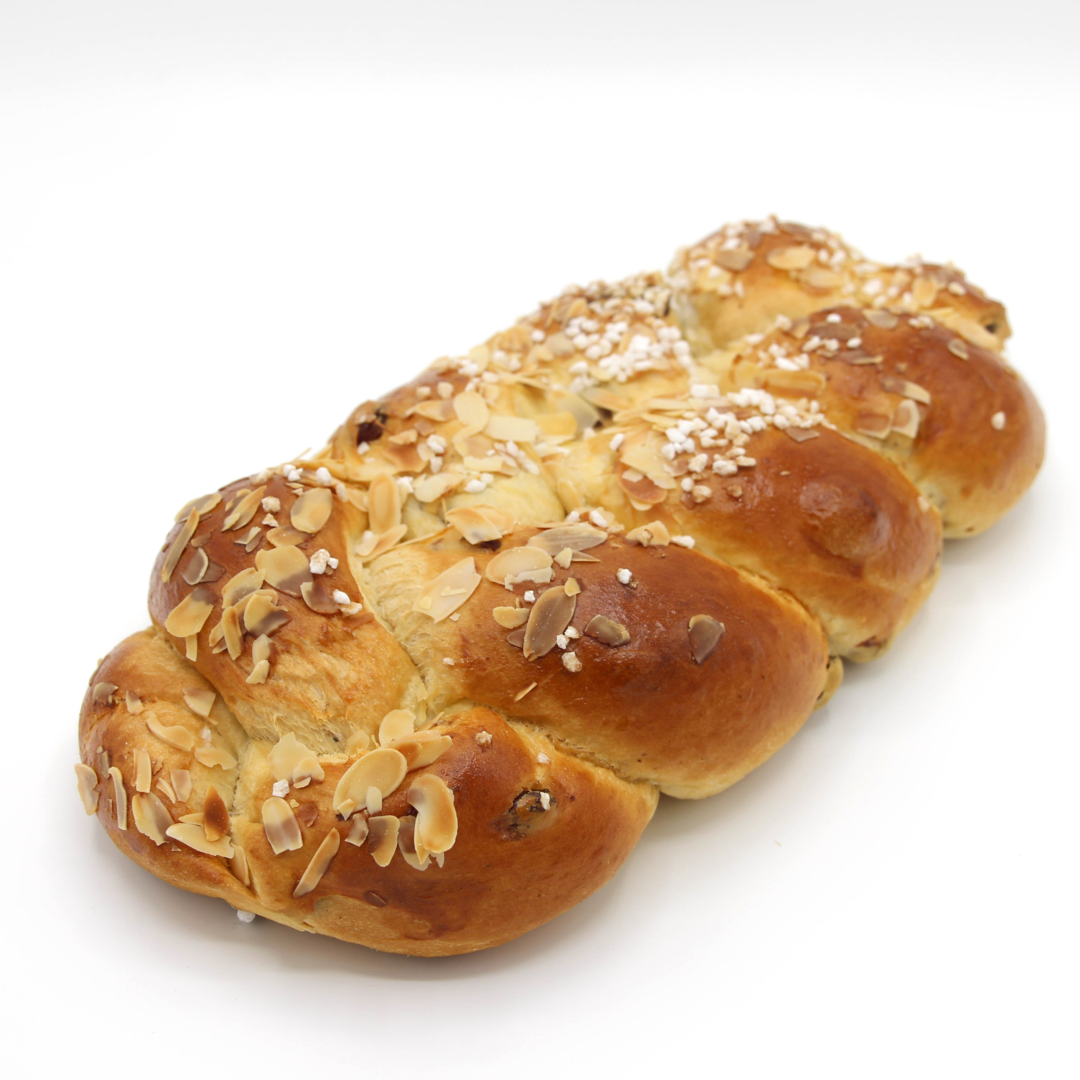 Zutaten: Weizenmehl, Wasser, Butter, Milchpulver, Marzipan, Ei, Hefe, Malz, Rosinen, Rum, Salz, Mandeln